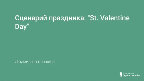 В моей работе неотъемлемой частью является проведение праздников на английском языке, подготовка к которым начинается задолго до самого события. В нем принимают участие многие школьники, которые сами готовят поделки, сувениры, шьют костюмы и рисуют декорации. День святого Валентина – один из таких праздников. На нем можно не только показать хорошие знания языка, но и повеселиться от души. Кроме того, такие мероприятия способствуют развитию творческой фантазии и инициативы в осуществлении совместной деятельности.