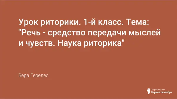 Урок риторики. 1-й класс. Тема: "Речь - средство передачи мыслей и чувств. Наука риторика"