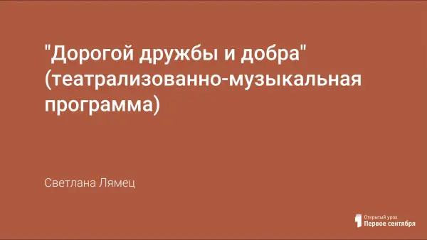 Внеклассное мероприятие "Дорогой дружбы и добра" проводится в форме театрализованно-музыкальнoй программы. Оно способствует воспитанию толерантного отношения учащихся друг к другу и формированию умения жить в мире с другими людьми; прививает навыки вежливого общения с окружающими; помогает учащимся постигать понятия добра и зла.