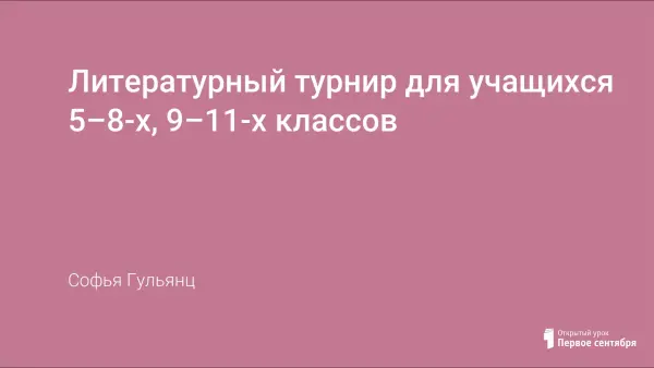 Форма литературного турнира позволяет повысить интерес учащихся к изучаемым произведениям, активизировать их работу на уроке и творческое осмысление программного материала. Предлагаемый материал содержит сценарий уроков в форме турнира для 5–8-х и 9–11-х классов. Задания турнира имеют межпредметный характер (литература-музыка, литература-живопись, литература-москвоведение), работают над расширением кругозора учащихся, развитием познавательных способностей.
