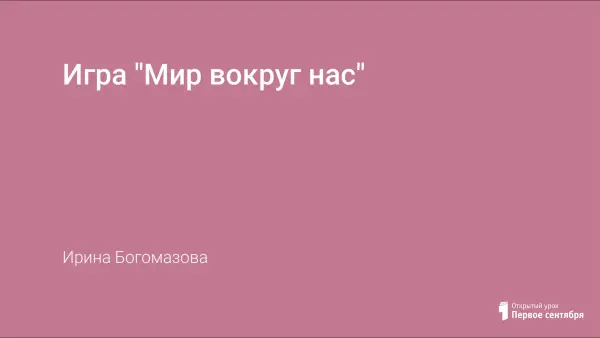Игра для 5-го класса, идущего по государственной программе (авторский коллектив под руководством В.В. Пасечника). Учебник В. М. Пакулова, Н.В. Иванова "Природа (неживая и живая)". Цель игры - обобщить знания полученные детьми по окружающему миру в течение первого полугодия, обращая особое внимание на главные понятия тем и их логические взаимосвязи.