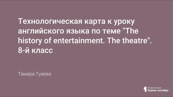 Представлена технологическая карта к уроку английского языка по теме "The history of entertainment. The theatre" в 8-м классе.