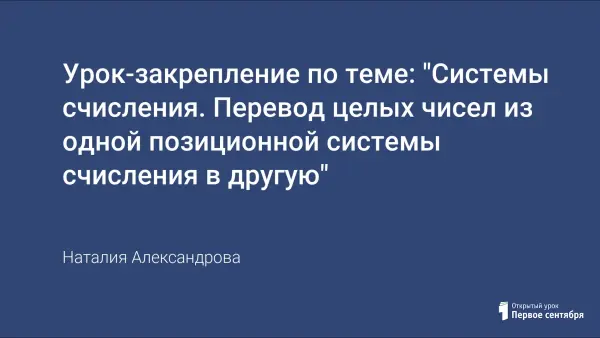 Целью данного урока является закрепление учащимися 8-го класса умений по переводу целых чисел из одной системы счисления в другую.