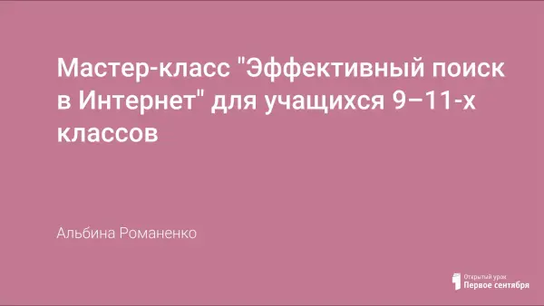 Ежегодно у нас в школе проходят игры для старшеклассников по поиску в Интернете, похожие на то, что проводит Yandex: "Кубок по поиску в Интернете". Но поскольку грамотная организация процедуры поиска знакома очень малому количеству активных пользователей из числа школьников, то перед началом игры мы проводим этот мастер-класс. Ребята имеют возможность все справочные материалы забрать с собой, и, по словам выпускников, они оказываются им очень полезными во время учебы в вузах.