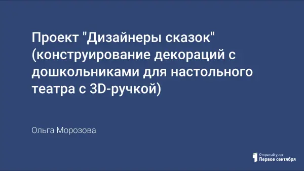 Данный проект направлен на стимуляцию познавательно-речевого развития, организацию совместной поисково-исследовательской деятельности педагогов, детей и родителей в ходе создания театральных декораций. Работа над проектом будет способствовать показу импровизированных театрализованных спектаклей, расширению кругозора у дошкольников.