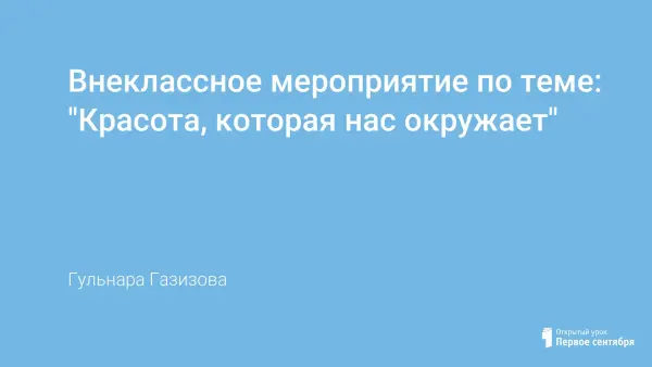 Статья рассказывает о красоте во всех ее проявлениях: красота в природе, красота любимой республики, красота человека. Использование в материале национального регионального компонента необходимо для того, чтобы лучше понять связь поколений, культуру и обычаи татарского народа. Данное мероприятие можно использовать как на уроках, так и во внеклассной работе.
