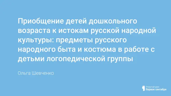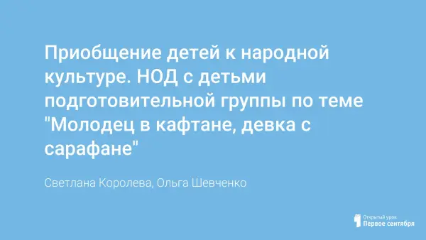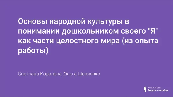Основы народной культуры в понимании дошкольником своего "Я" как части целостного мира (из опыта работы)