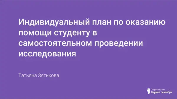 В помощь руководителю ВКР или курсовой работы хотелось бы предложить индивидуальный план по оказанию помощи студенту в самостоятельном проведении исследования. В индивидуальном плане фиксируются конкретные сроки, когда студент должен отчитаться перед руководителем о проделанной работе и получить консультацию. Такая форма работы позволяет студенту планомерно распределять время на проведение научно-исследовательской работы, позволяет сделать процесс открытым и управляемым.