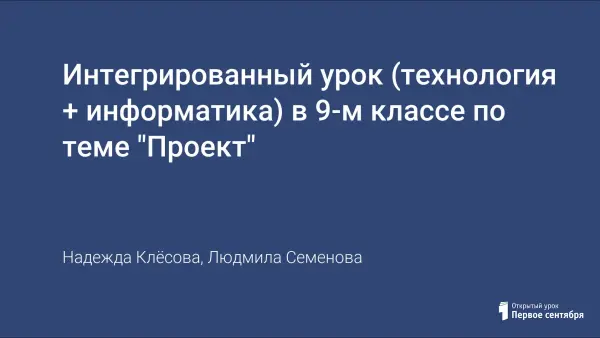 Интегрированный урок (технология + информатика) в 9-м классе по теме "Проект"