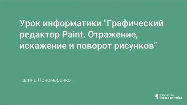 Урок по информатике – практическое занятие по работе с графическим редактором Paint – отражение, искажение и поворот рисунков. Материал можно использовать в начальных классах, а так же в 5-м и 7-м классе, в зависимости от того, с какого класса начато изучение информатики.