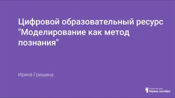 Цифровой образовательный ресурс «Моделирование как метод познания» состоит из подробного описания разработки урока и семи файлов-ЦОРов, используемых во время урока (4 презентации, средство для интерактивной доски, файл электронной таблицы, файл карточки с заданием).