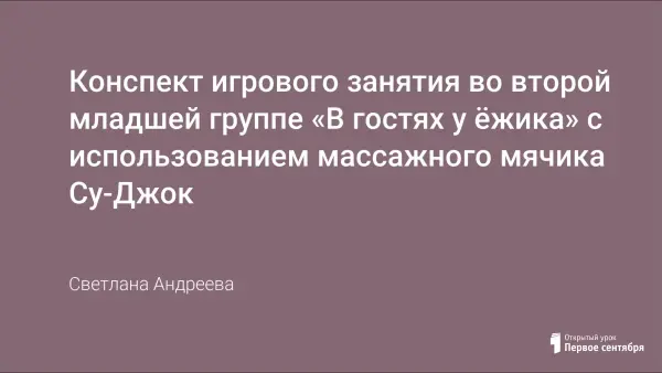 Цель занятия: формирование речи посредством использования массажного мячика Су-Джок, воздействие на биологически активные точки кистей рук с помощью массажёра, при этом стимулируя речевые зоны коры головного мозга.