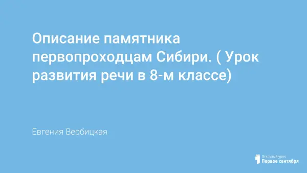 Описание памятника первопроходцам Сибири. ( Урок развития речи в 8-м классе)