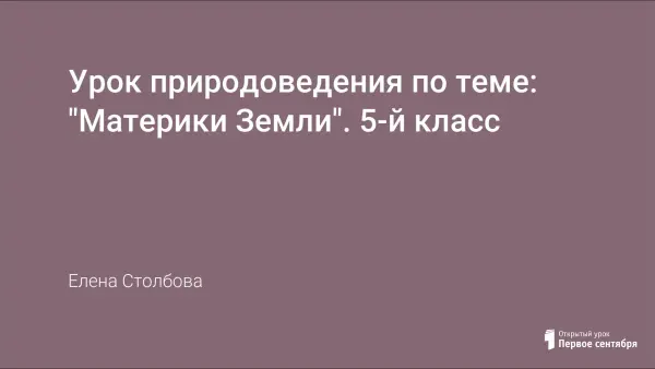В статье представлен урок "Материки Земли" для 5-го класса. В последнее время много внимания уделяется информационно-коммуникационным технологиям обучения. На данном уроке имеется большая возможность их применения. Через весь урок проходит презентация, которая помогает определить и цели урока, и материки Земли, и их главные особенности, и их достопримечательности, и провести анализ успешности достижения целей урока.