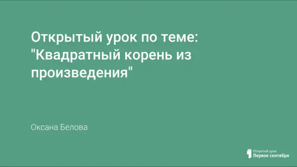 Цель урока: - дать ученикам возможность самим (с помощью учителя) вывести формулу квадратного корня из произведения;