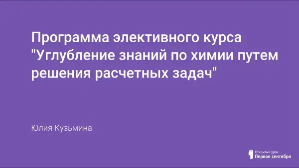 Элективный курс «Углубление знаний по химии путем решения расчетных задач» предназначен для учащихся 8-го класса и носит предметно-ориентированный характер. Содержание курса поможет ученикам подготовиться к участию в химических олимпиадах, к выбору и поступлению на избранный профиль, получить реальный опыт решения сложных задач и, в то же время, установить межпредметные связи с математикой, физикой, географией.