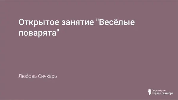 Цель занятия: формировать представление о профессии повара.