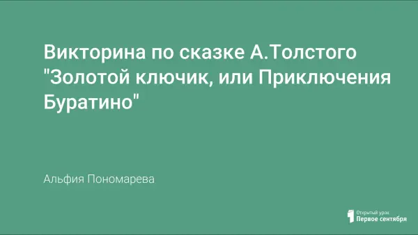 Урок-викторина знакомит с историей создания сказочной повести, обобщает знания по прочитанному произведению А.Толстого «Золотой ключик или приключения Буратино».
