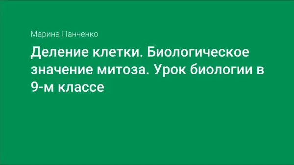 Деление клетки. Биологическое значение митоза. Урок биологии в 9-м классе
