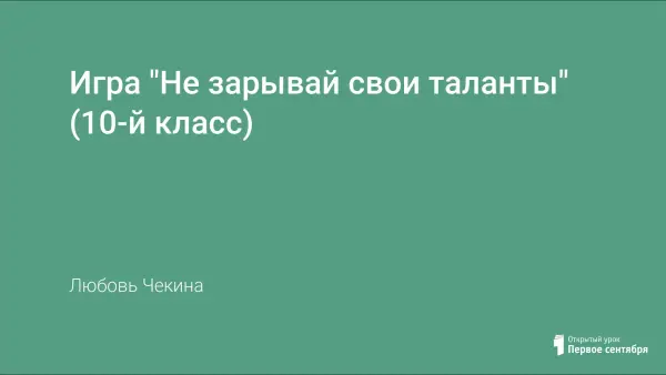 Игра - одно из средств активизации познавательных интересов учащихся. Помогает делать урок живым, а общение искренним. Игра "Не зарывай свои таланты" в 10х классах проводится после изучения раздела "Основы предпринимательства" при закреплении раздела или при проведении Недели технологии. Ее целью является актуализация знаний и повышения интереса к предмету "Технология"
