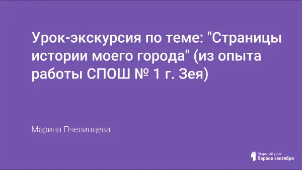 Каждому из нас для понимания своего места в жизни важно знать прошлое всего человечества, страны, региона, населенного пункта и своей семьи. Урок-экскурсия "Страницы истории моего города" один из опыта организации работы по воспитанию гражданственности и патриотизма средствами краеведения.
