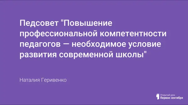 В работе представлены материалы по подготовке к педсовету. Проведено анкетирование педагогов и учащихся по вопросам формирования профессиональной компетентности педагогов. Проанализировано влияние профессиональной компетентности педагога на формирование ключевых компетенций ученика. Кроме того, определена роль каждого участника образовательного процесса в создании имиджа школы.