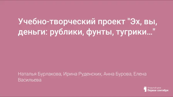 В данном проекте можно не только продемонстрировать эрудицию, находчивость, творческие способности, но и узнать много нового и интересного о деньгах.