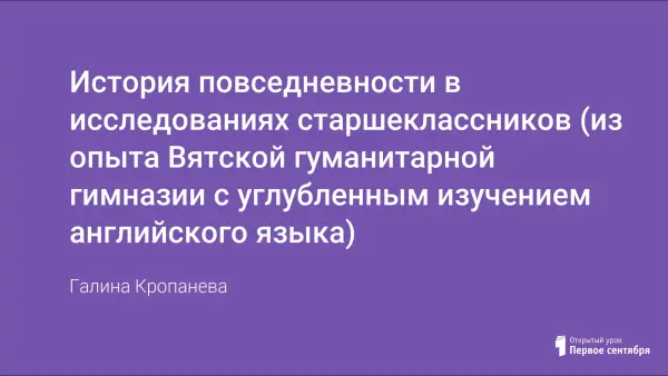 Статья посвящена исследованиям гимназистов по истории повседневности. Эта история тех, кто не виден большой историей, это жизнь людей, которые включены в исторический процесс как рядовые участники. Основные темы исследований: история семей, школы, города. Они опираются на материалы архивов, письменную мемуаристку и устные свидетельства. История повседневности помогает гимназиста более адекватно воспринимать исторический процесс, снимается противоречие между историей и жизнью.