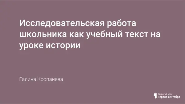 Методическая цель представленного на фестиваль материала заключается в рассмотрении вопроса об использовании исследовательской работы школьника как учебного текста при изучении программного материала.