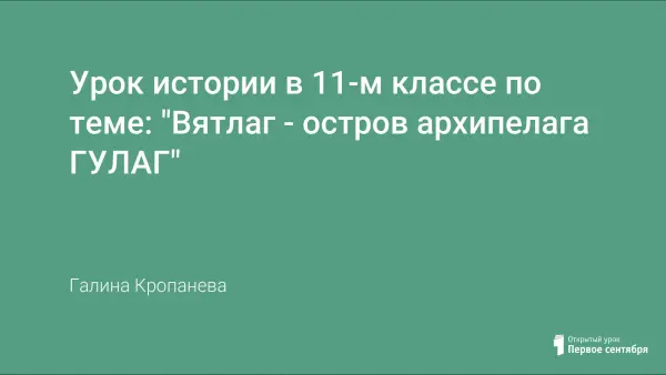 Изучение темы "Тоталитаризм. Сталинские репрессии" представляет определенные трудности для старшеклассников. Один из самых трагических периодов отечественной истории вызывает у них много вопросов: каковы причины этого явления, последствия, судьбы людей, попавших под колесо репрессивной машины. Урок посвящен истории Вятлага, одного из сталинских лагерей, расположенных в Кировской области в 1930–1950 годы. Краеведческий материал может помочь учащимся более глубоко осмыслить исторический материал.