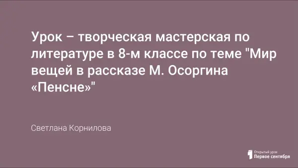 Данный материал представляет собой разработку урока литературы. Урок нацелен на знакомство с фактами биографии писателя М.А.Осоргина, рассказом «Пенсне»; помощь обучающимся в повторении тропов; развитие навыков выразительного чтения, анализа текста. На уроке используются творческие задания, которые развивают мышление и воображение на основе коллективной творческой работы.