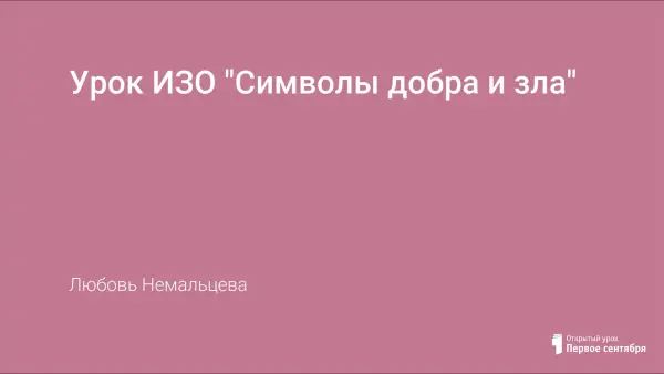 Урок посвящен формированию представления о символах добра и зла через волшебную сказку с музыкальным сопровождением. Задача урока - процесс украшения двух сказочных флотов - доброго и злого. Детям раздаются заготовки кораблей , они "оживляют" их при помощи цвета и символов. Итог - два разных флота - преобладание светлых красок и добрых символов - победа добра над злом.