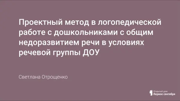 Проектный метод в логопедической работе с дошкольниками с общим недоразвитием речи в условиях речевой группы ДОУ