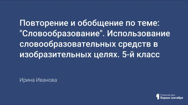Урок проводится в 5-м классе. Целью урока являются не только повторение и обобщение по теме "Словообразование", но и знакомство детей с такими изобразительно-выразительными средствами языка, как морфемный повтор, использование уменьшительно-ласкательных суффиксов.