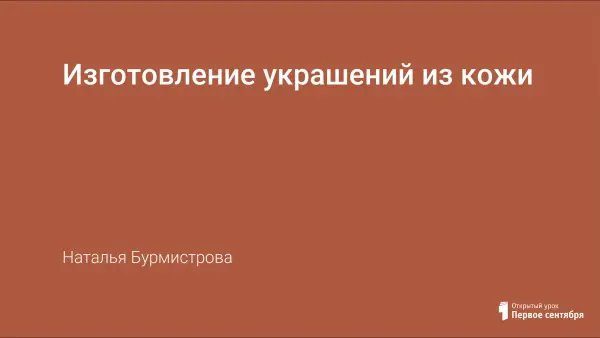 В своей работе я хочу поделиться опытом работы по разделу "Художественная обработка материалов" , в который я включила работу с уникальным, "живым" материалом, каким является натуральная кожа. Уроки по работе с кожей провожу в параллелях 6 - х, 7 - х, 8 - х классов. В каждом классе по 3 двухчасовых занятия. Предлагаю примерный конспект урока на тему "Изготовление украшений из кожи". Надеюсь, что коллеги смогут воспользоваться моими наработками.