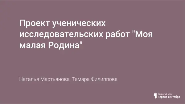 Проект ученических исследовательских работ "Моя малая Родина"