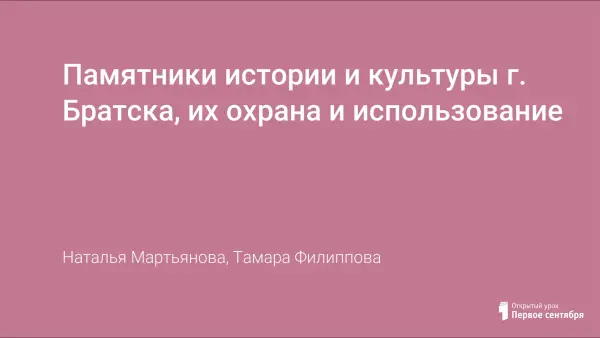 Памятники истории и культуры г. Братска, их охрана и использование