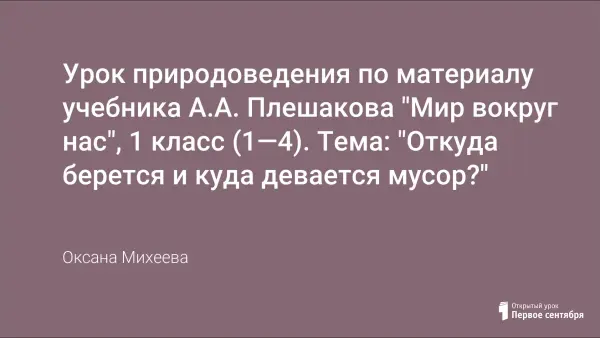 Урок природоведения по материалу учебника А.А. Плешакова "Мир вокруг нас", 1 класс (1—4). Тема: "Откуда берется и куда девается мусор?"