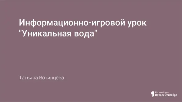 Информационно-игровой урок "Уникальная вода" разработан для 8 класса, но может быть проведен и в 9 классе, так как дает много новой информации для интеллектуального развития школьника, показывает взаимосвязи химии, физики, биологии, затрагивает проблемы экологии. Структура урока дает возможности для творческого преобразования урока в соответствии с уровнем обученности учащихся, экологическими проблемами конкретного региона, новостями науки и техники.