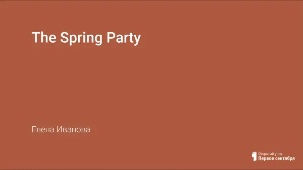 "The Spring Party" - это сценарий весеннего урока- праздника на английском языке во втором классе к учебнику И. Н. Верещагиной, К. А. Бондаренко " Английский язык " 2 класс.