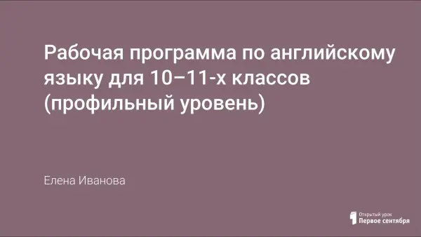 Рабочая программа по английскому языку для 10–11-х классов (профильный уровень)