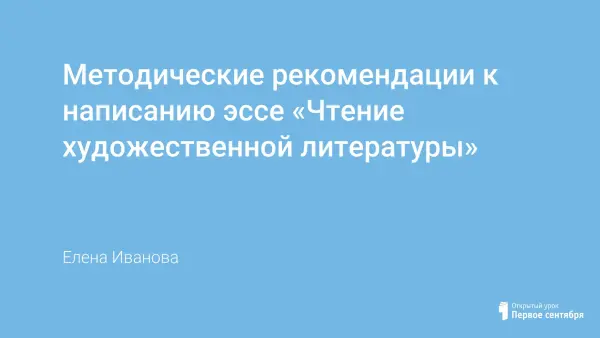Методические рекомендации к написанию эссе «Чтение художественной литературы»