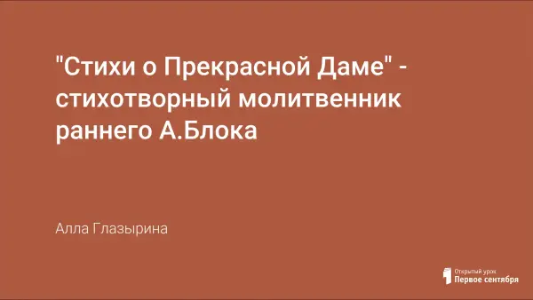 Данный урок проводится в 11-м классе при изучении раннего творчества А.А. Блока. Судьба, философские воззрения поэта позволят развить представление об исторической действительности начала ХХ века, познакомить с творческим началом в литературе А.Блока, закрепить теоретические сведения о символизме, обобщить навыки анализа поэтического произведения.