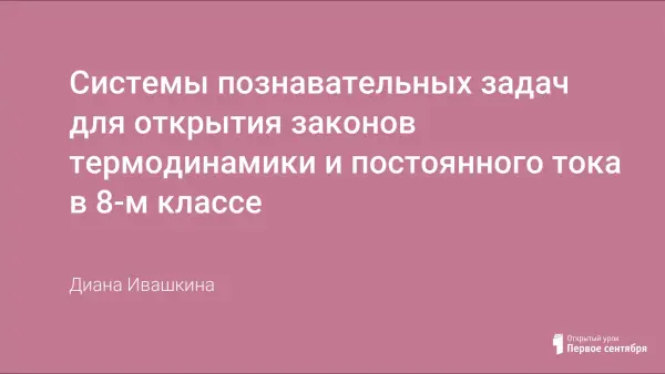 В данной работе предлагается разработка систем познавательных задач, которые позволяют так построить уроки объяснения нового материала, чтобы учащиеся "самостоятельно" открывали эмпирические законы термодинамики и законы постоянного тока. Комментарии к конкретным урокам помогут провести такие уроки с небольшими затратами времени на подготовку.
