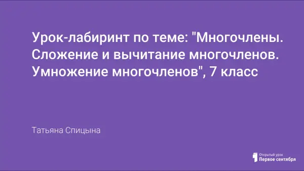 Урок-лабиринт по теме: "Многочлены. Сложение и вычитание многочленов. Умножение многочленов", 7 класс