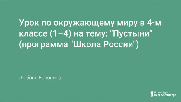 Материал представляет собой конспект урока по окружающему миру. Задача учителя – создать условия, при которых у учащихся сформируется представление о природной зоне – пустыне. В процессе работы учащиеся учатся наблюдать, рассуждать, делать выводы.