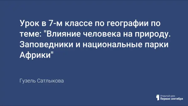 Основная цель урока - формирование представлений о влиянии человека на природу, которая изучается по опорным конспектам и логическим цепочкам, а также характеристика заповедников и национальных парков Африки, развитие познавательного интереса учащихся.