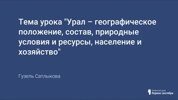 На данном уроке рассматривается Уральский экономический район. Формируются представления о районе, его природных условиях, ресурсах, существующих проблемах.
