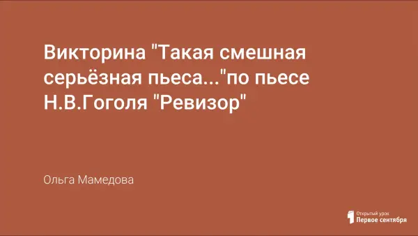 Данная статья поможет учителю провести викторину по пьесе Н.В.Гоголя «Ревизор» как на уроке в течение 45 минут, так и после, во внеурочное время, в рамках Недели русского языка и литературы. Викторина позволит вспомнить яркие реплики основных героев и узнать новый материал, связанный с историей возникновения этого произведения. Одарённые учащиеся, внимательные читатели будут выявлены и награждены.