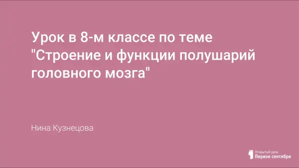 Урок в 8-м классе по теме "Строение и функции полушарий головного мозга"